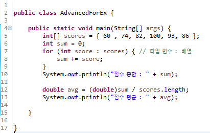 for( 타입변수 : 배열 ) {