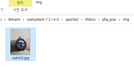 5) fileUploadResult.php 페이지에서 설정한 경로에 선택한 이미지가 업로드 되었는지 확인.