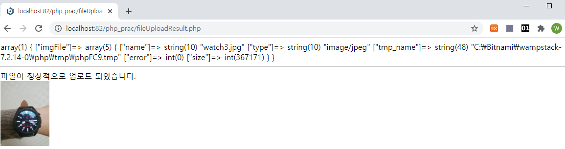 fileUploadResult.php 소스 내 9번째 라인에서 "var_dump($_FILES);"로 체크한 부분을 통해