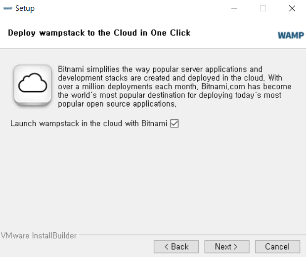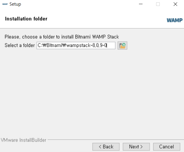 저는 D 드라이브에 공간이 넉넉해서 "D:\Bitnami\wampstack-8.0.9-0"로 경로를 바꿨어요!