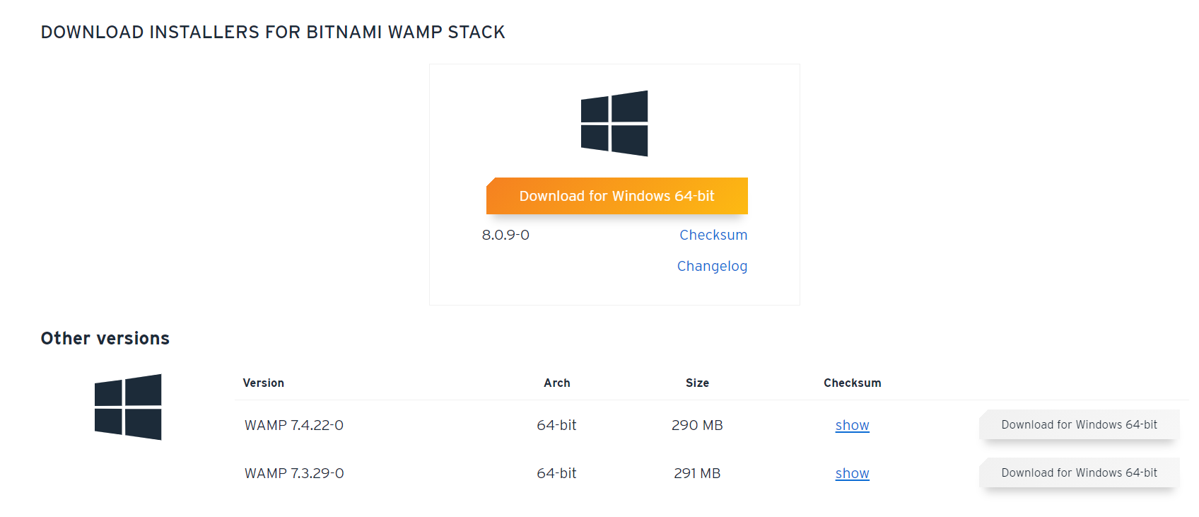 저는 윈도우로 사용할 예정이라 Bitnami사에서 제공하는 WAMP 스택으로 설치해보겠습니다.