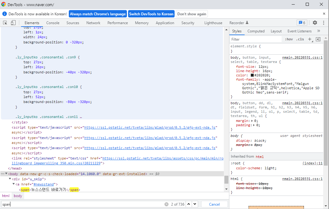 ❗❗❗❗ 당장 네이버에서 개발자 도구 실행한 다음 ctrl+f를 누르고