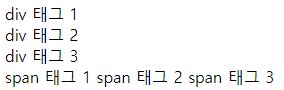 우선 <div> 태그는 줄바꿈이 되었고, <span> 태그는 줄바꿈이 없습니다!!!